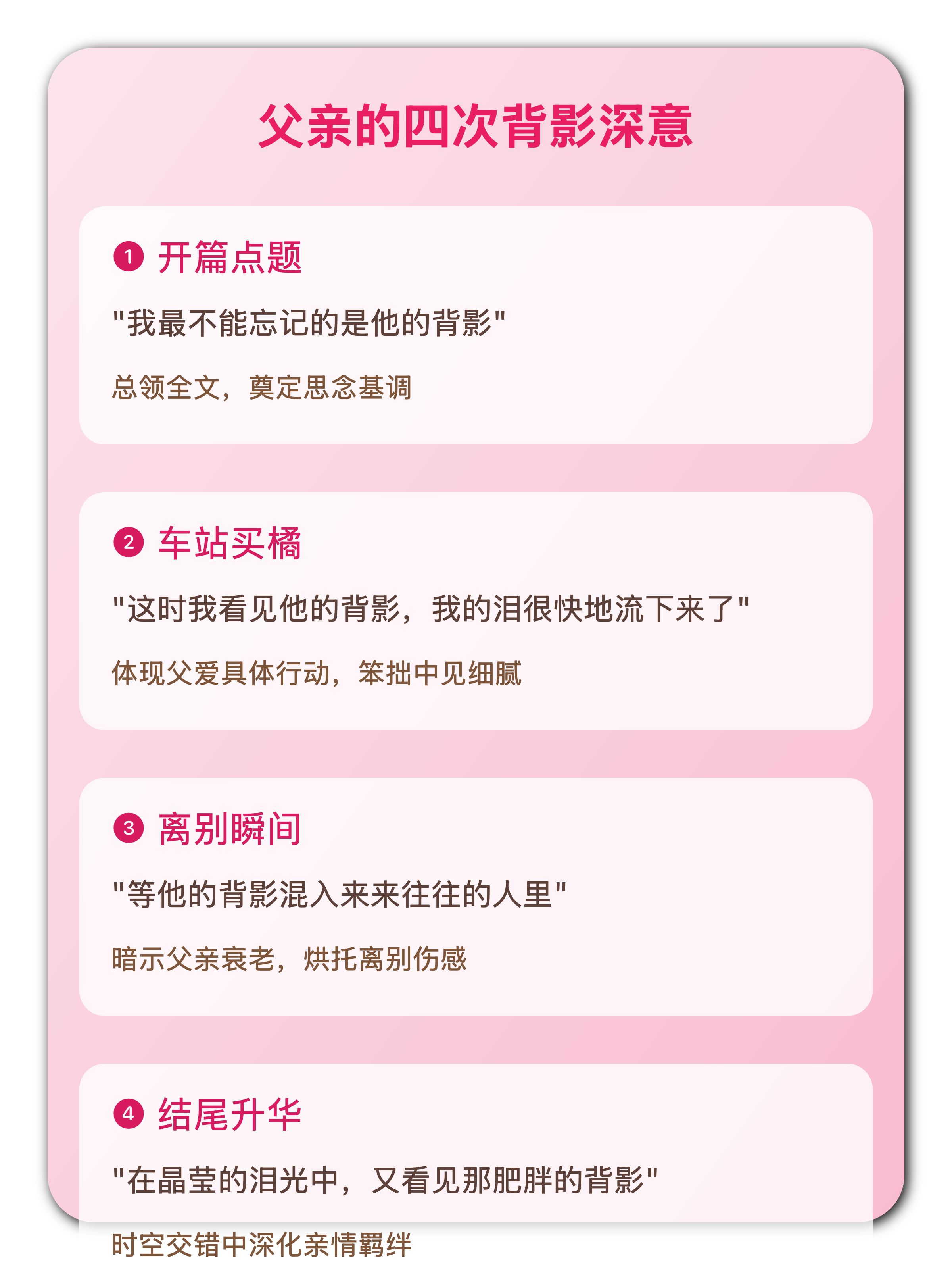 提示词:阅读全文,文中共几次父亲的背影?分别有何深意,输出 SVG 格式,3:4,小红书风格:——省略 1328 字