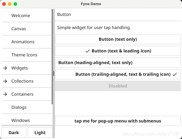 运行完fyne_demo后,就可以看到GUI 界面了: