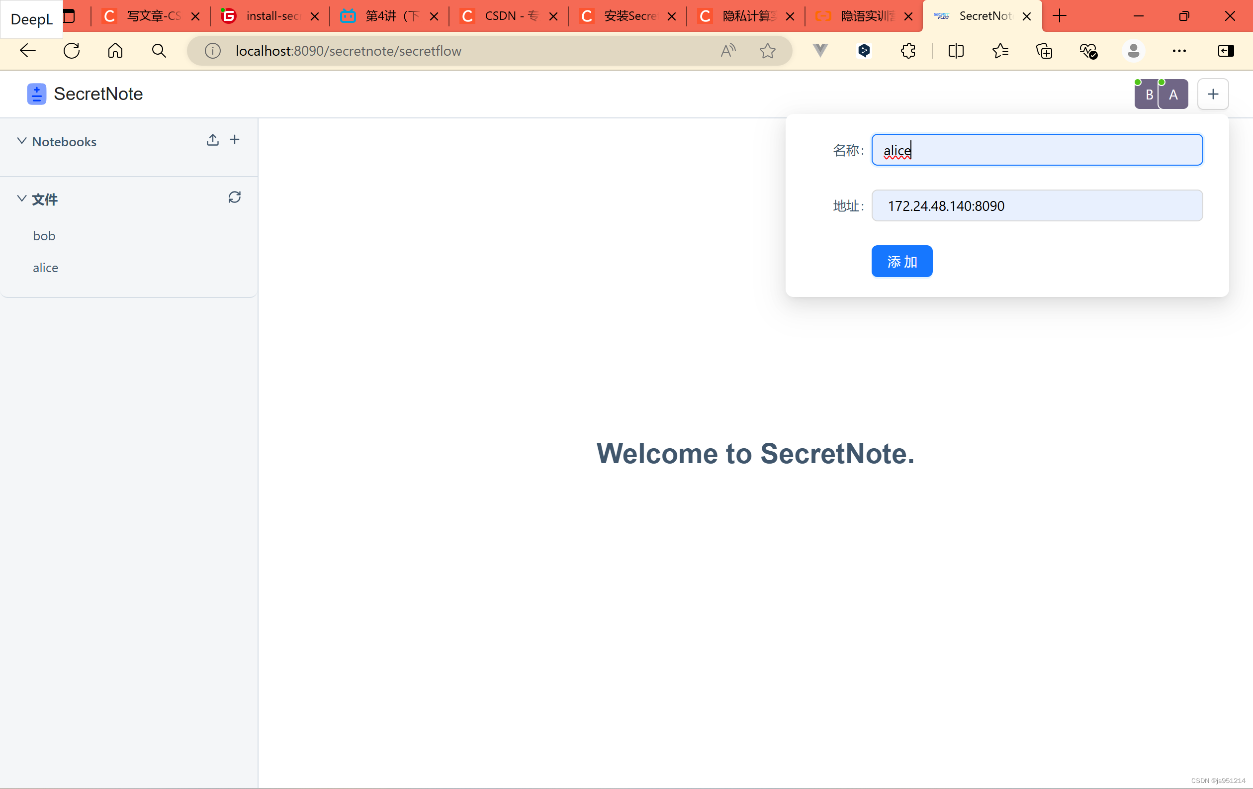 4.打开浏览器输入http://localhost:8090/ 打开SecretNote可视化界面
