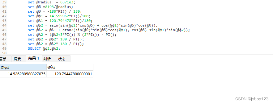 set @strText = concat(@strText,@λ2,' ',@φ2,',');