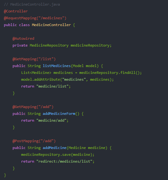 下面是基于Spring Boot实现的一个信息化药品管理系统的功能说明和简单的代码示例。我们将实现登录、用户信息管理、药品管理、值班排班、数据统计等基本功能。