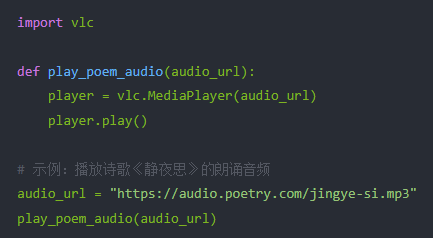 为了帮助用户更好地理解诗歌,可以提供朗诵音频。我们可以使用音频文件或者API接口获取。