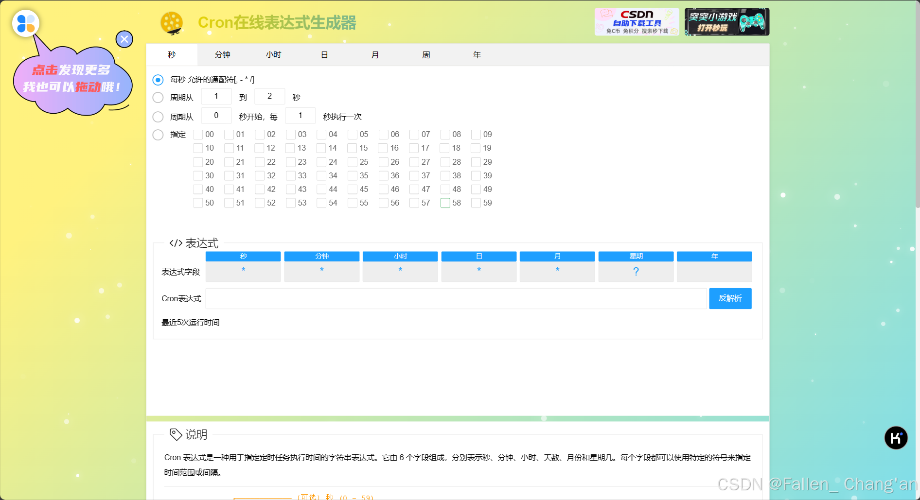 所以我们可以使用生成器Cron - 在线Cron表达式生成器,这里我就不过多演示了