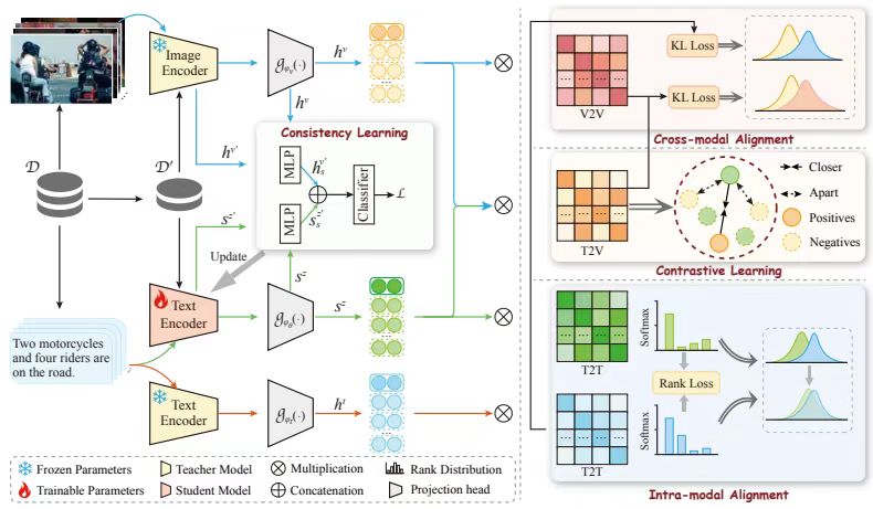 引入多教师排名蒸馏与KL散度优化,捕获连续语义结构以消除模态内语义分歧。