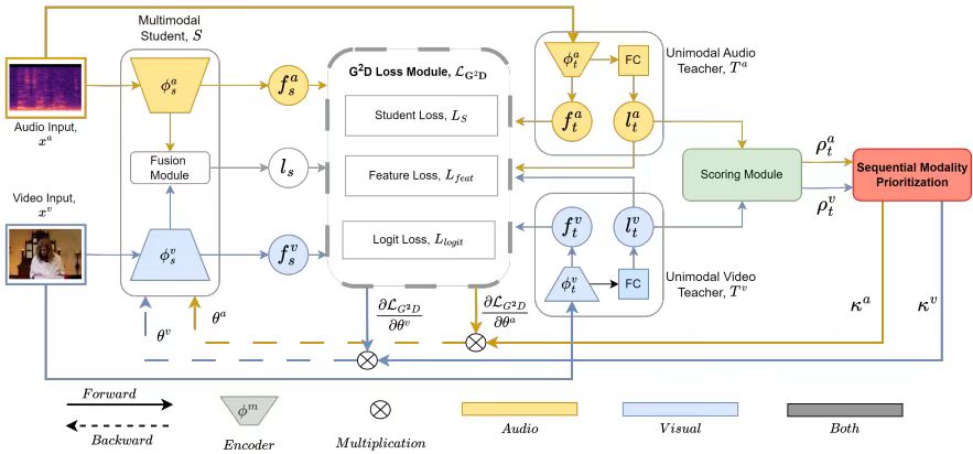 提出Gradient-Guided Distillation (G2D)框架,融合单模态和多模态目标,通过知识蒸馏优化弱模态利用。