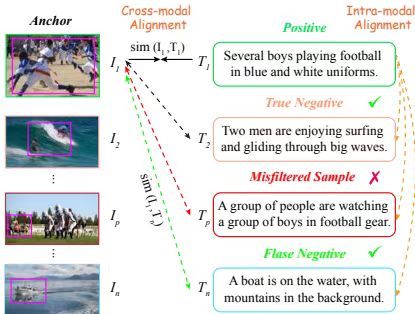 通过软化负样本与辅助任务语义相似性矩阵,实现细粒度图文对齐,缓解跨模态错位偏差。