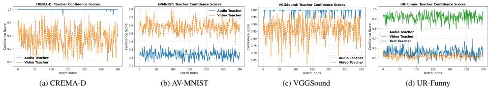 基于单模态教师置信度分数量化模态不平衡,实现自适应训练策略,无需手动调参。