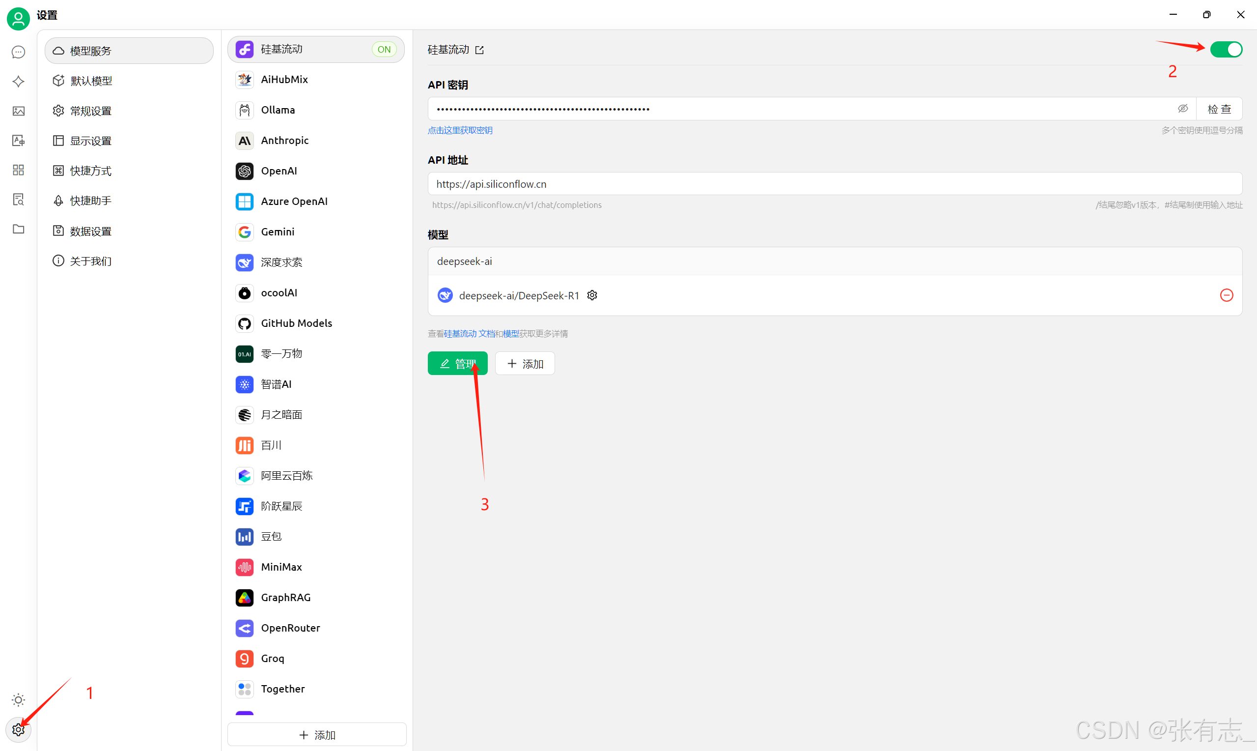 若需在本地客户端直接调测 DeepSeek-R1 & V3 模型,可通过部署以下第三方工具实现。这些工具均支持通过 SiliconCloud 的 API 接口集成自定义模型(添加模型流程需通过平台配置),推荐按需求选择适配客户端: