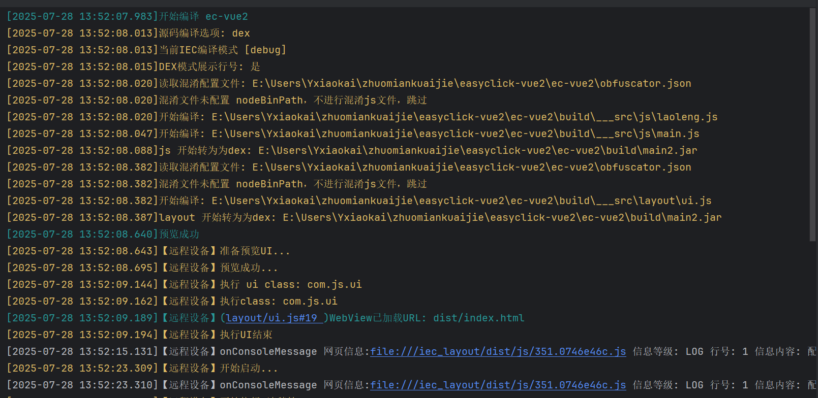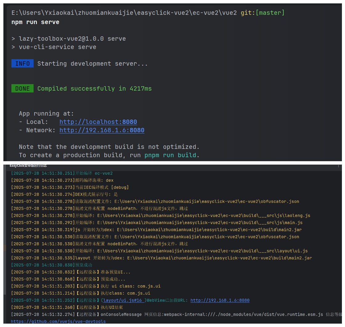 这就好办了 —— 只要在 vue 脚手架中配置好 build 路径,再在 uil.js 中配置 webview 的 url,就能实现开发环境和生产环境的一键切换了。项目开源地址:https://github.com/YXKxk/easyclick-vue2,如果对你有帮助请关注我抖音:程序员小风,获取更多的自动化,js逆向,小程序、网页开发新知识