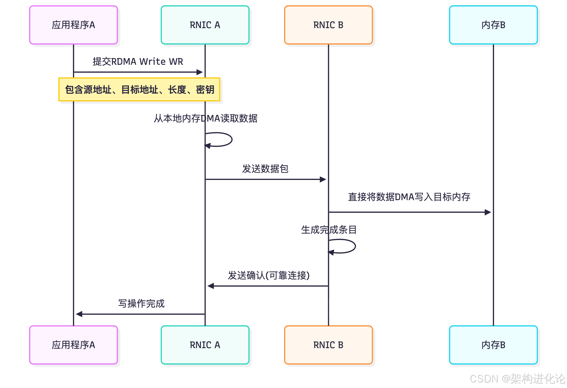 下面的序列图展示了RDMA Write操作的核心流程: