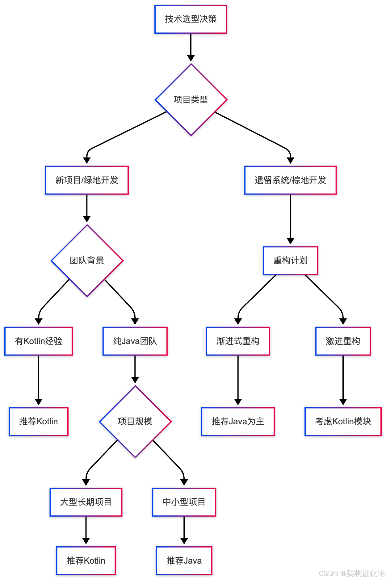 新项目:如果团队有Kotlin经验或愿意投资学习,优先选择Kotlin