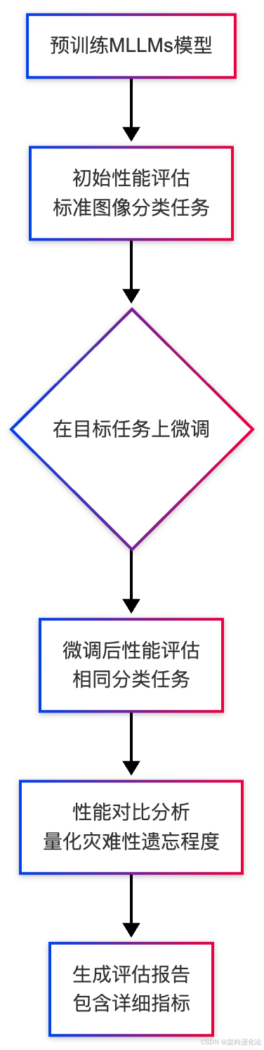 遗忘程度量化:微调后,再次在相同的标准分类数据集上评估模型,比较微调前后性能差异,精确计算遗忘程度