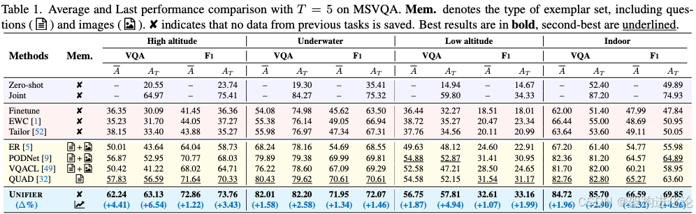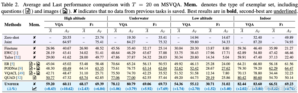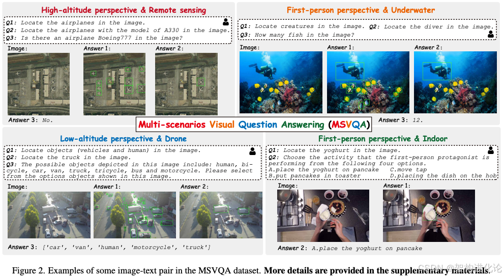 为了验证Unifier框架的有效性,论文作者构建了一个多场景视觉问答数据集MSVQA,包含了高空、水下、低空和室内四种不同场景和视角的数据,模拟了真实世界中的数据流变化。