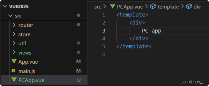 在src下新建PCApp.vue,结构和内容如下:
