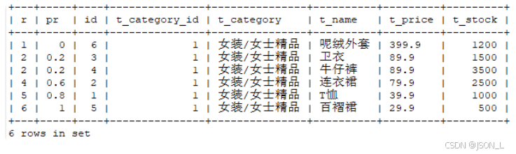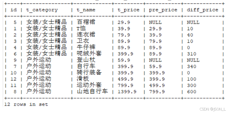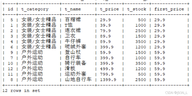 下面就可以针对t_goods表中的数据来验证每个窗口函数的功能。