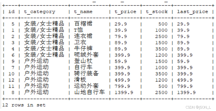 id, t_category_id, t_category, t_name, t_price, t_stock