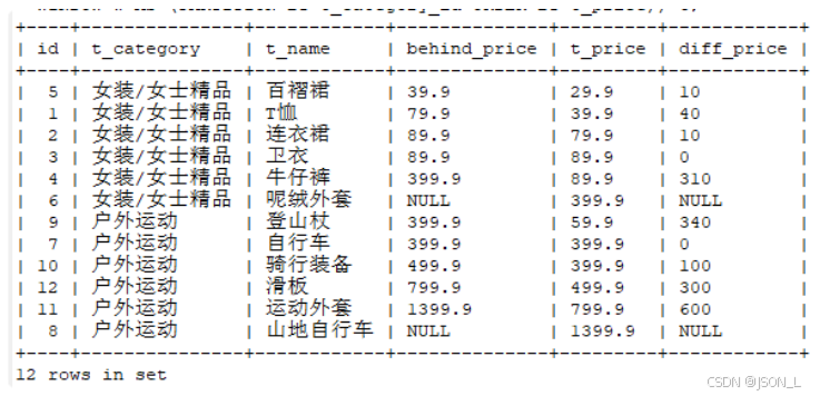 例如,查询t_goods数据表中后一个商品价格与当前商品价格的差值。