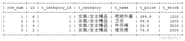 例如,查询t_goods数据表中每个商品分类下价格最高的3种商品信息。