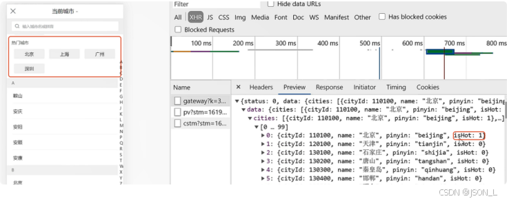 通过请求后端接口获取城市列表,注意headers中的X-Host地址。