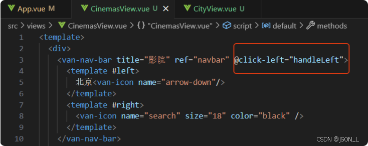 在影院(cinemasView)中左侧城市绑定点击事件,