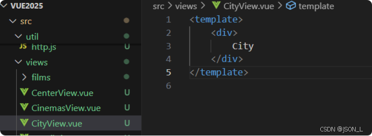 在src/views下创建CityView.vue文件。