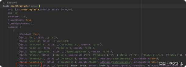 找到初始化表格,然后找到最后一列操作,如下: