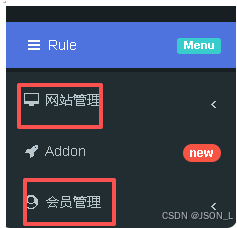 切换后,部分菜单没有变化,其中网站管理是我新增的,会员管理是修改过名称。