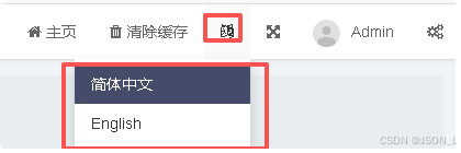 开启后,在后台会多一个切换语言的入口,默认就是中英文。