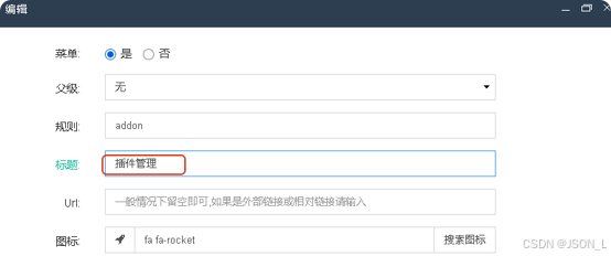 添加菜单时的标题,应填写英文的标题;如下的插件管理,目前显示的是插件管理,但是数据库中的记录却是英文的,如下图: