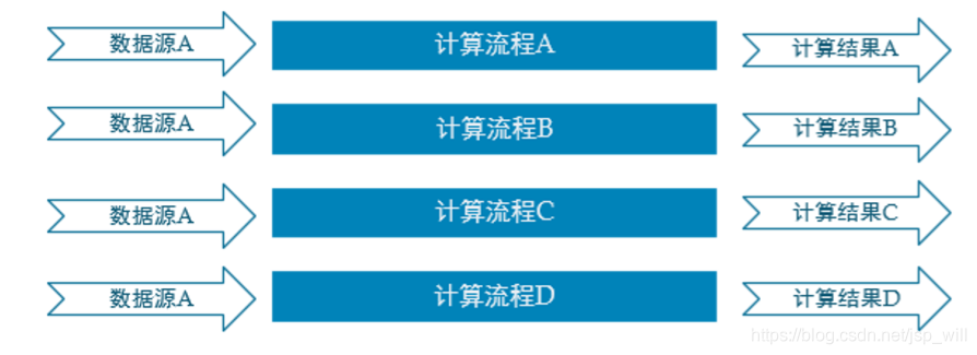 普通实时计算优先考虑时效性,所以从数据采集经过实时计算直接得到结果,如此做时效性更好,但是弊端是由于计算过程中的中间结果没有沉淀下来,所以面对大量实时需求的时候,计算的复用性较差,开发成本随着需求直线上升。