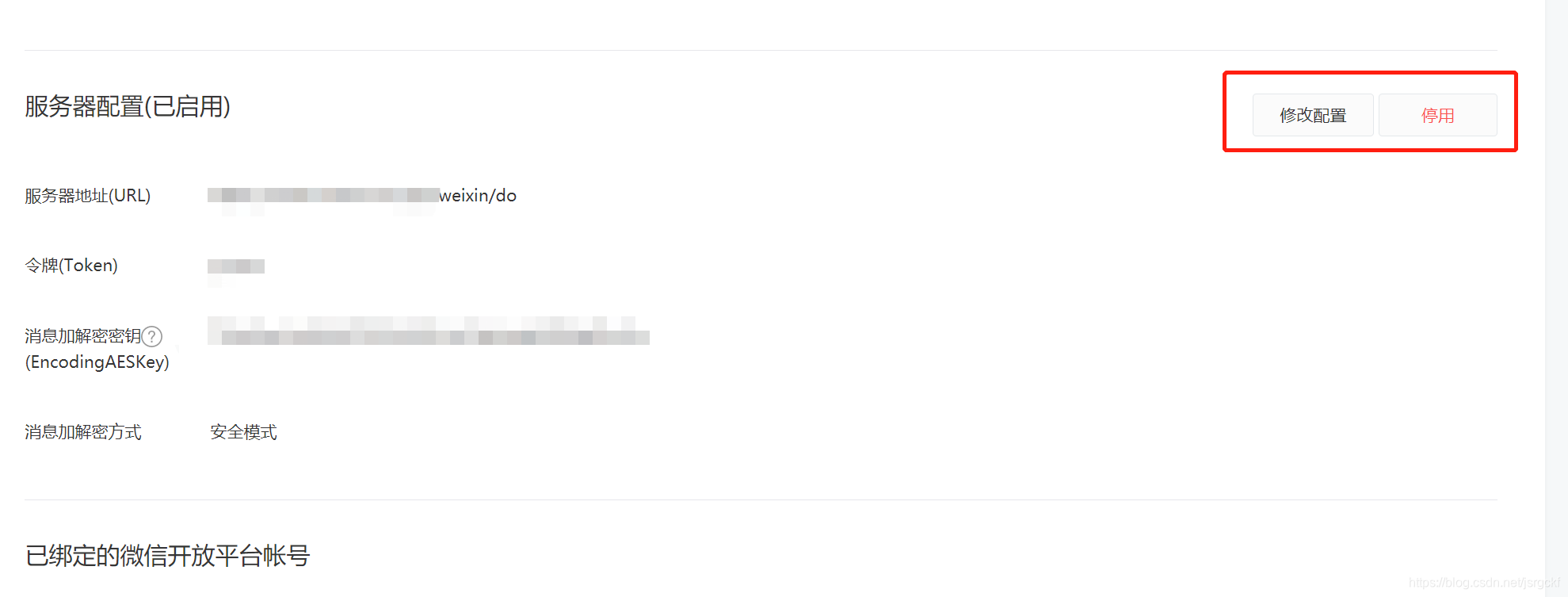 消息加密方式,我选的是安全模式。就是微信请求过来的数据都是加密之后的。服务端发送给微信的也都是加密过的。这样安全性高一点。