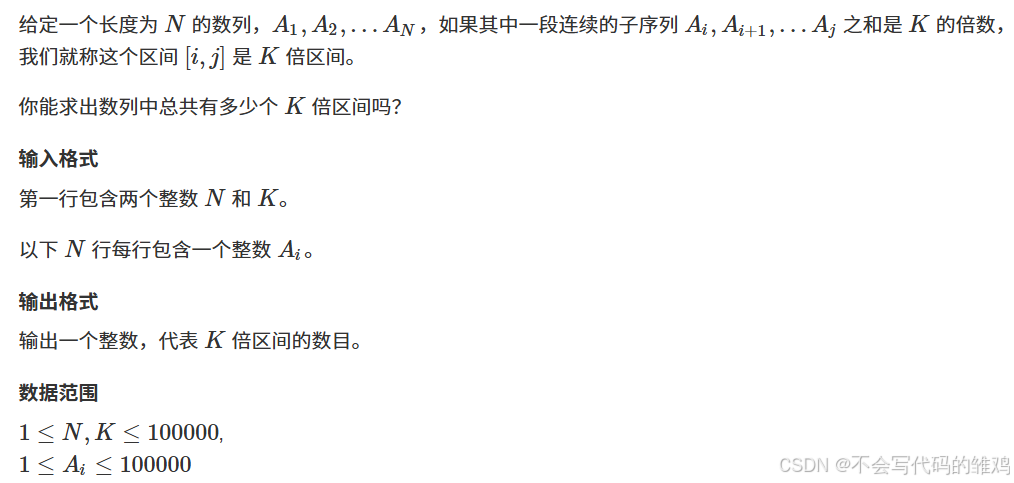 if(sum[i]%k==0)//对第一个到第i个的和整除k的计数