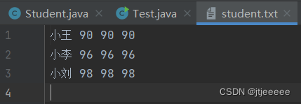 学习IO流已经有一段时间了,有些之前的东西都忘了,乘这次顺便复习一些前面的东西,这次的案例是键盘输入学生的信息(名字,数学成绩,语文成绩,英语成绩),然后按总分排序写入文本文件。