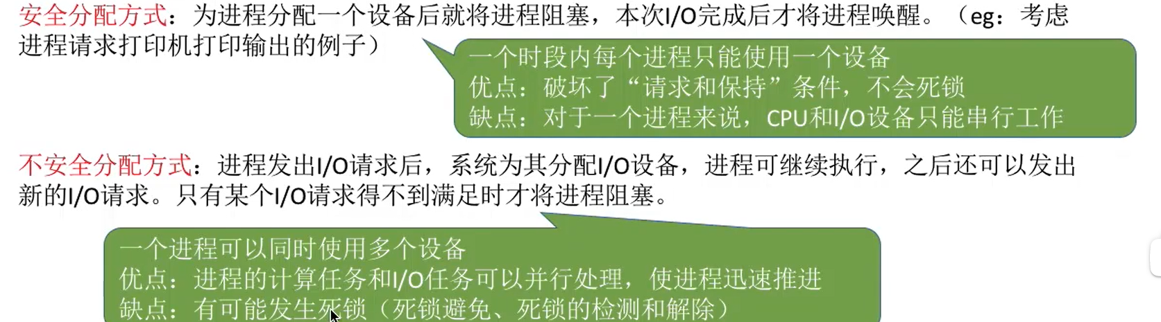 分配设备要考虑:设备属性(独占?共享?虚拟?虚拟就是假脱机技术等独占改成共享)。设备分配算法(FCFS 优先级高的优先 短任务优先)。安全性。