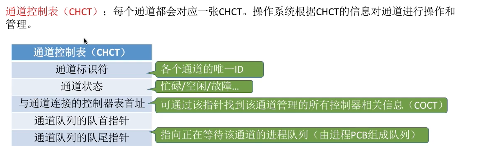 - 根据 COCT 找到 CHCT,空闲就分配,不空闲就等待。