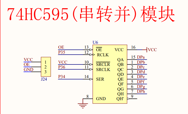 74HC595 是一个位移缓存器,有8位串行输入、并行输出,并行输出是三态输出(高电平、低电平、高阻抗)。比如一次输入一个比特,输入八次,并行输出可以输出一个8位的字 1010 1010.