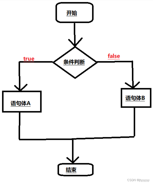 2.如果是true,则执行if里大括号内的语句体,然后跳出if-else语句。