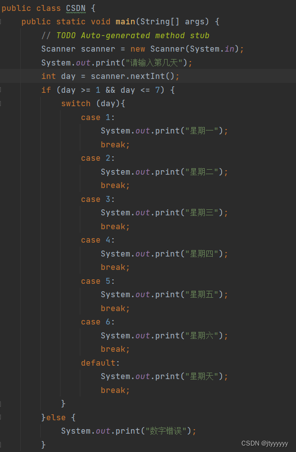 3.如果表达式的结果常量与case内的常量都不相同,就会执行default内的语句体