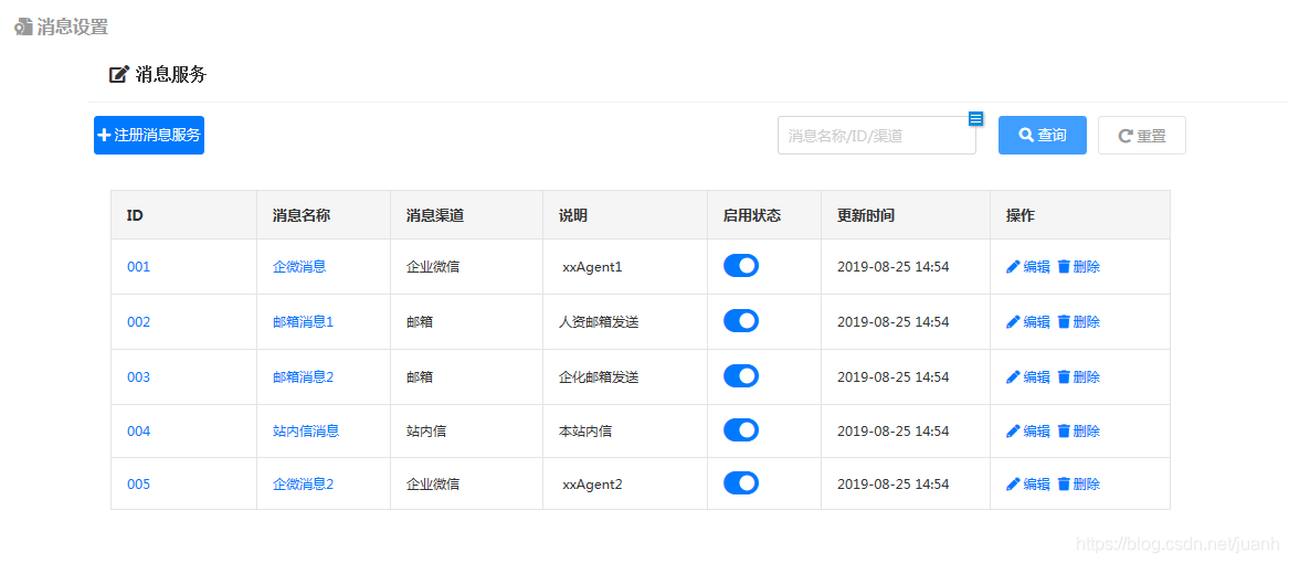注册表:规则ID, 渠道,标题,状态(可用不可用);
