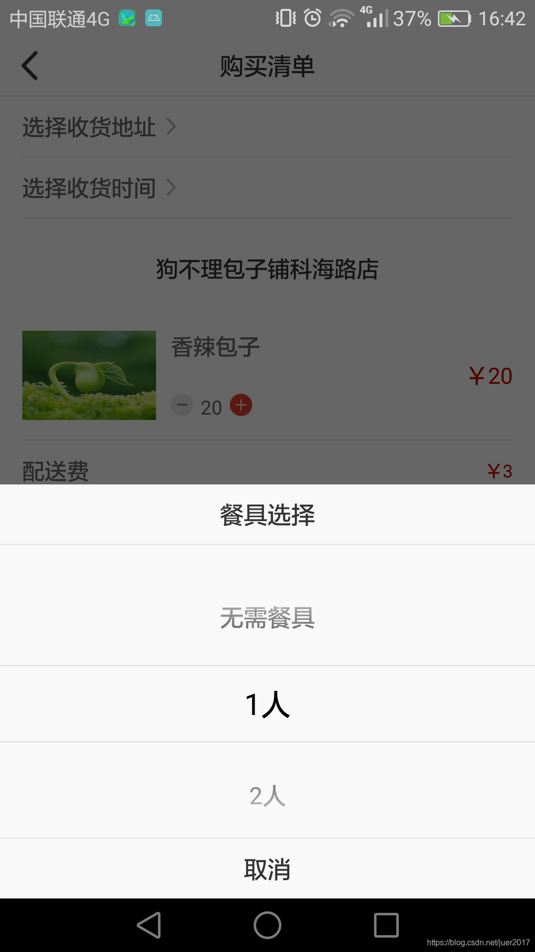 点击选择餐具弹出底部弹窗