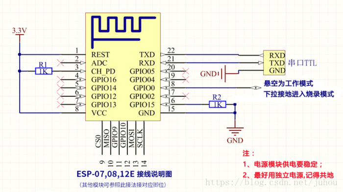 tips: 本人使用的是esp-07,但是其他的型号也是差不多的,可以参考。