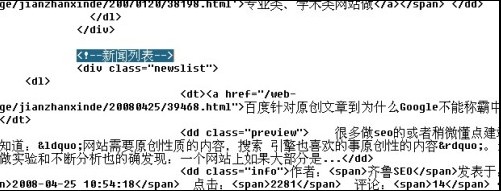 右键查看源文件 找到区域开始的HTML,就是找文章列表开始的标志。