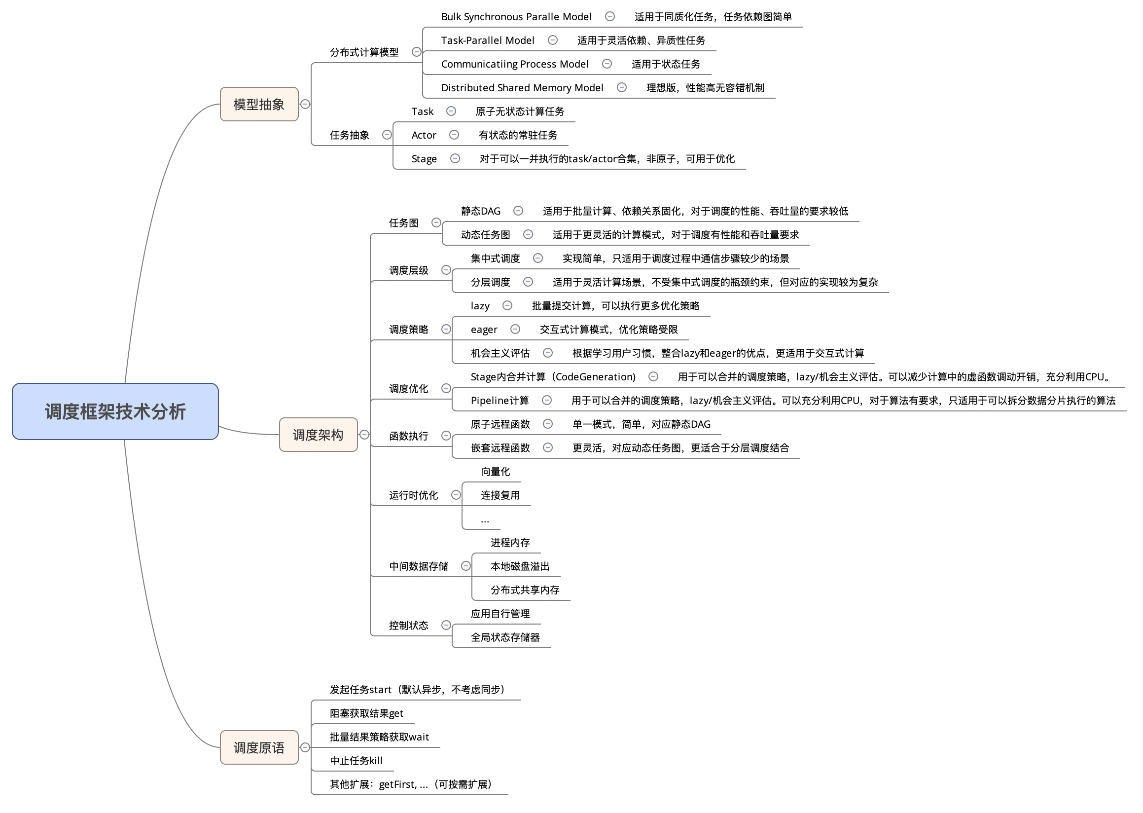 我们对系统设计,特别是调度框架设计的对应技术和适应场景进行了如下的整理,在进行系统设计时需要考虑到需求场景对于系统架构的需求,并对应选择合适的设计与实现。