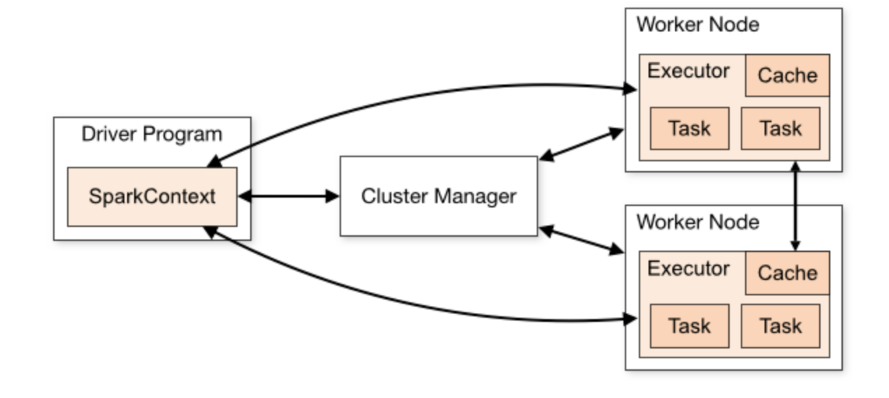 Spark其应用程序在集群中以独立的进程组来运行,分为Driver和Executor两个角色。Driver即用户的主程序,Executor会为用户的应用程序处理计算和数据程序,driver程序会在其生命周期中监听并接收来自它的executor连接。