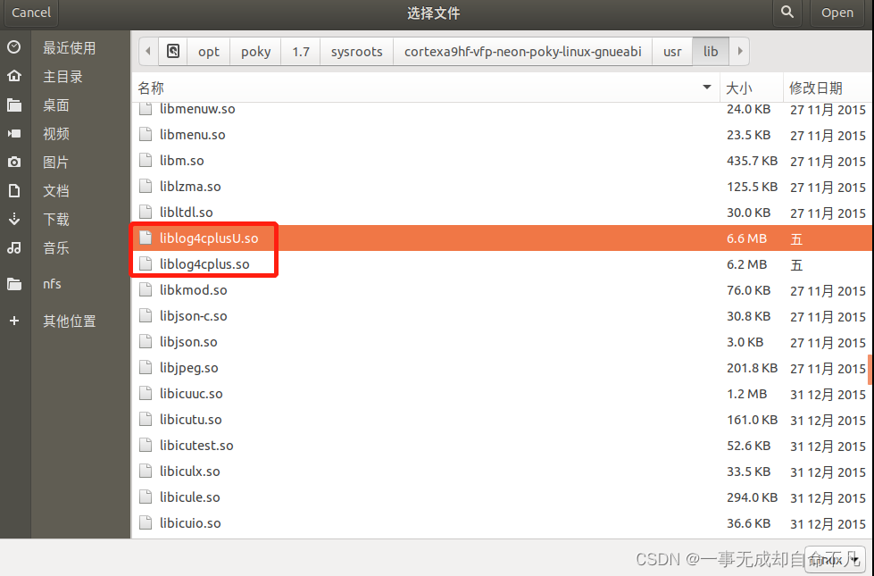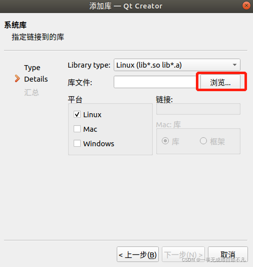 在qtcreator工程中选择添加系统库,选择上述工具链的lib文件夹位置,选中刚才拷贝进去的库文件,一共2个,添加两次。