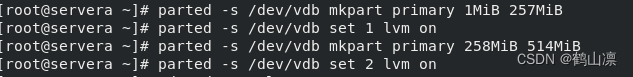 [root@host ~]# parted -s /dev/vdb set 3 lvm on