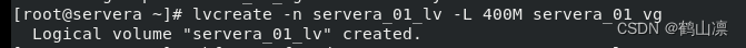 使用lvcreate在servera_01_vg中创建一个名为servera_01_lv、大小为400MiB的LV