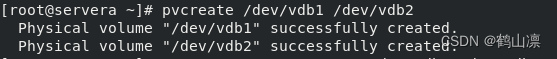 (2)创建物理卷:使用pvcreate将分区(或其他物理设备)标记为物理卷。pvcreate命令会将物理卷分成若干固定大小的物理区块(PE)