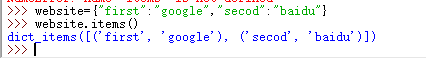 (4)用d.items()方法得到一组一组的键值对,结果是list。