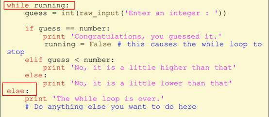 如果你从for或while循环中终止,任何对应的循环else块将不执行。